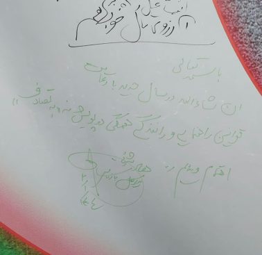 وی در ادامه به ۲پویش “نه به تصادفات” و “نبض انرژی” پیوست و مطالب مهم هشداری را در قالب متنی زیبا برای یادگاری بر روی بنر ثبت کرد.