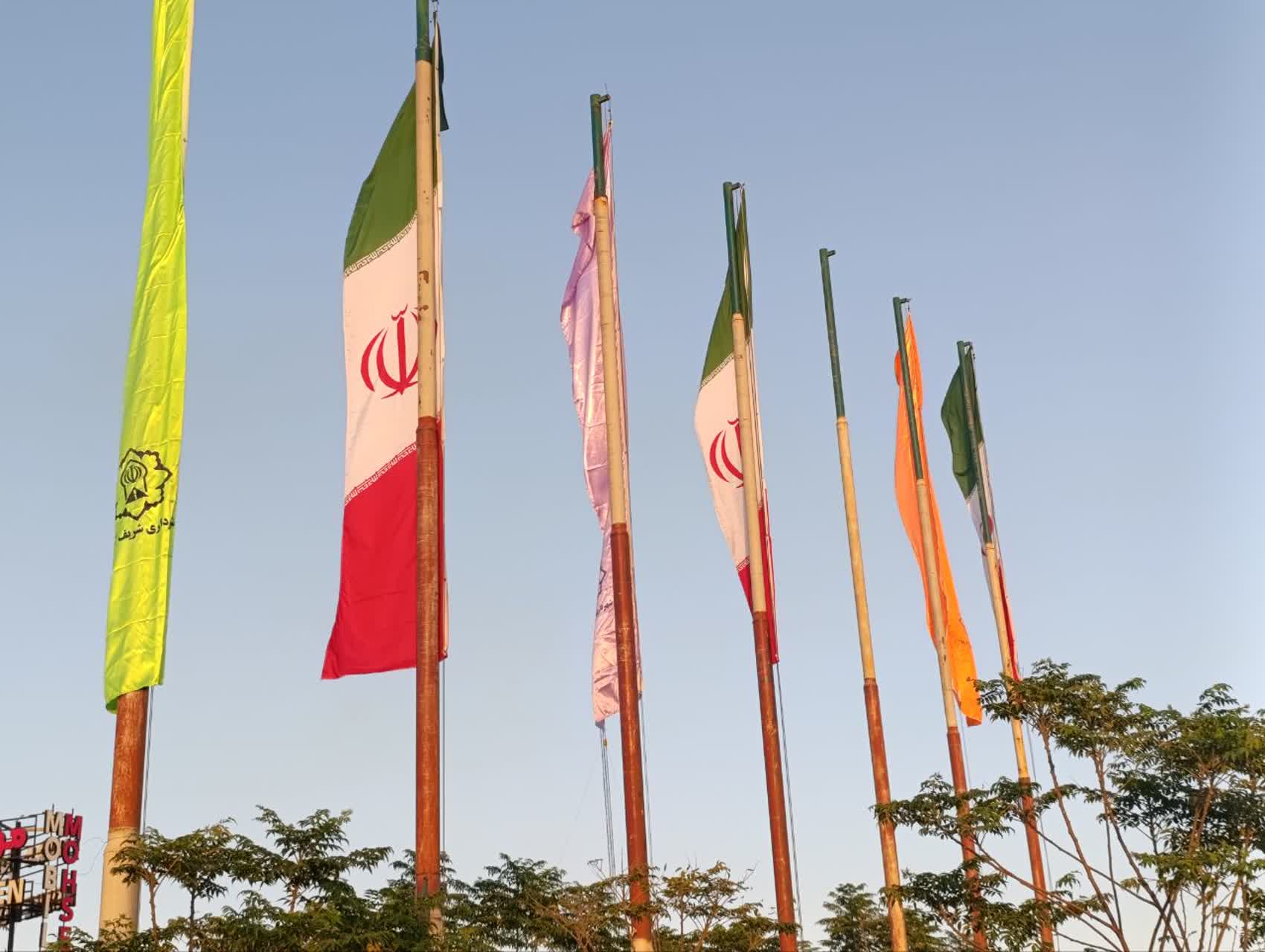 پرچم های زیبا و ۳رنگ جمهوری اسلامی ایران و پرچم های رنگی که باعث زیبایی بصری شهر شده طراوت و غروری وصف نشدنی را در ورودی شهر شریف آباد و در محور مهم امام رضا(ع) رقم زد.