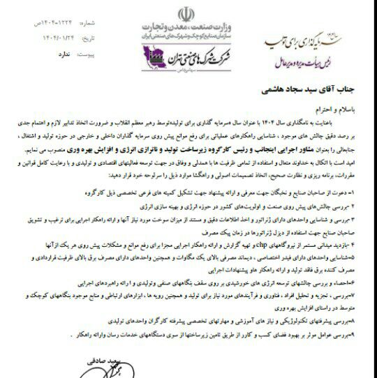 طی حکمی از سوی رئیس شرکت شهرکهای صنعتی استان تهران سید سجاد هاشمی مشاور اجرایی و رئیس کارگروه زیرساخت تولید و ناترازی انرژی و افزایش بهره وری شد