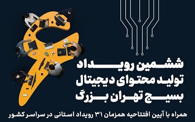 ششمین رویداد تولید محتوای دیجیتال بسیج تهران بزرگ و آئین افتتاحیه همزمان ۳۱ رویداد استانی در سراسر کشور برگزار می شود.